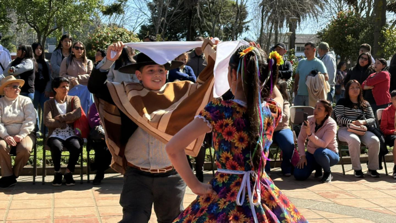 El Taller de Cueca Semillita Cuequera, dirigido por Mario Sáez Cartes, deleitó al público con sus coreografías folclóricas, mientras que se entregó un reconocimiento a la pareja de bailarines Boris y María Antonia, quienes representarán a la comuna en el Provincial de Cueca Escolar.