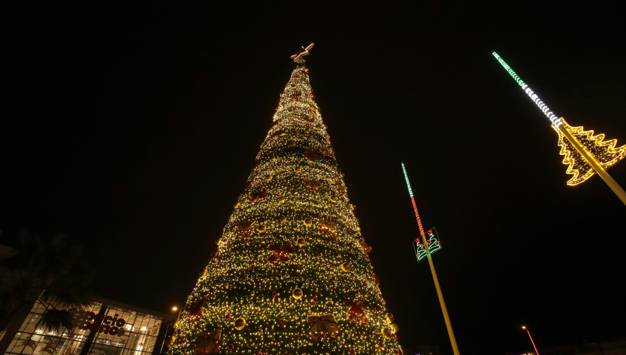 Encienden tradicional árbol navideño en explanada de la Municipalidad de Antofagasta